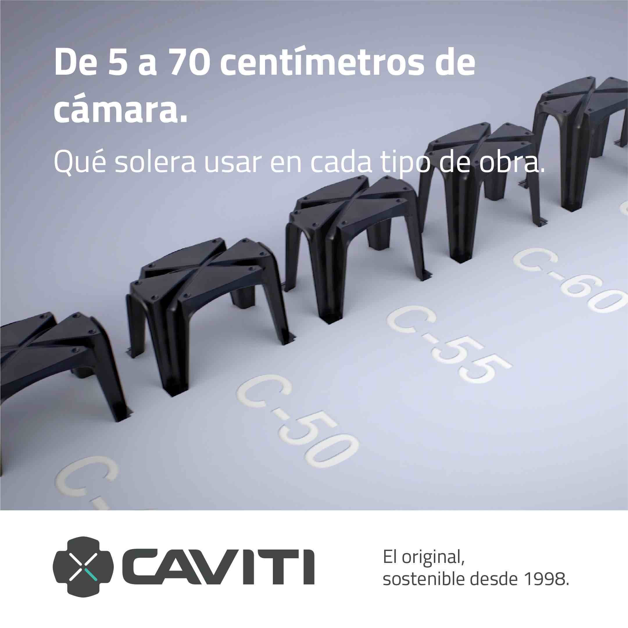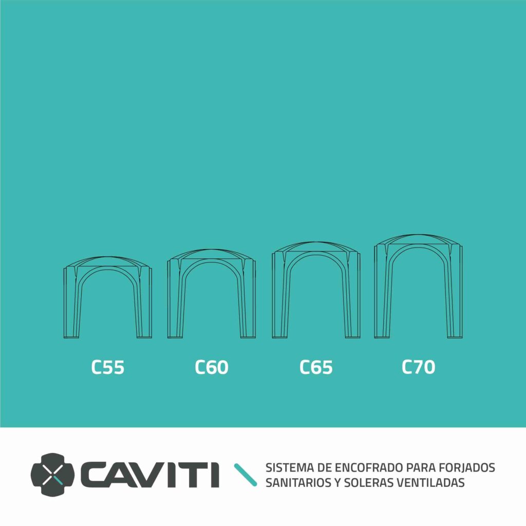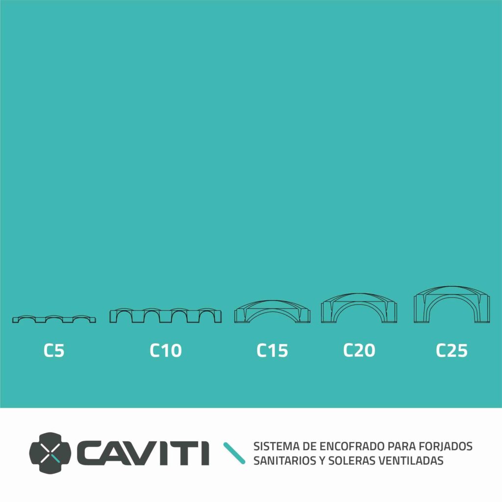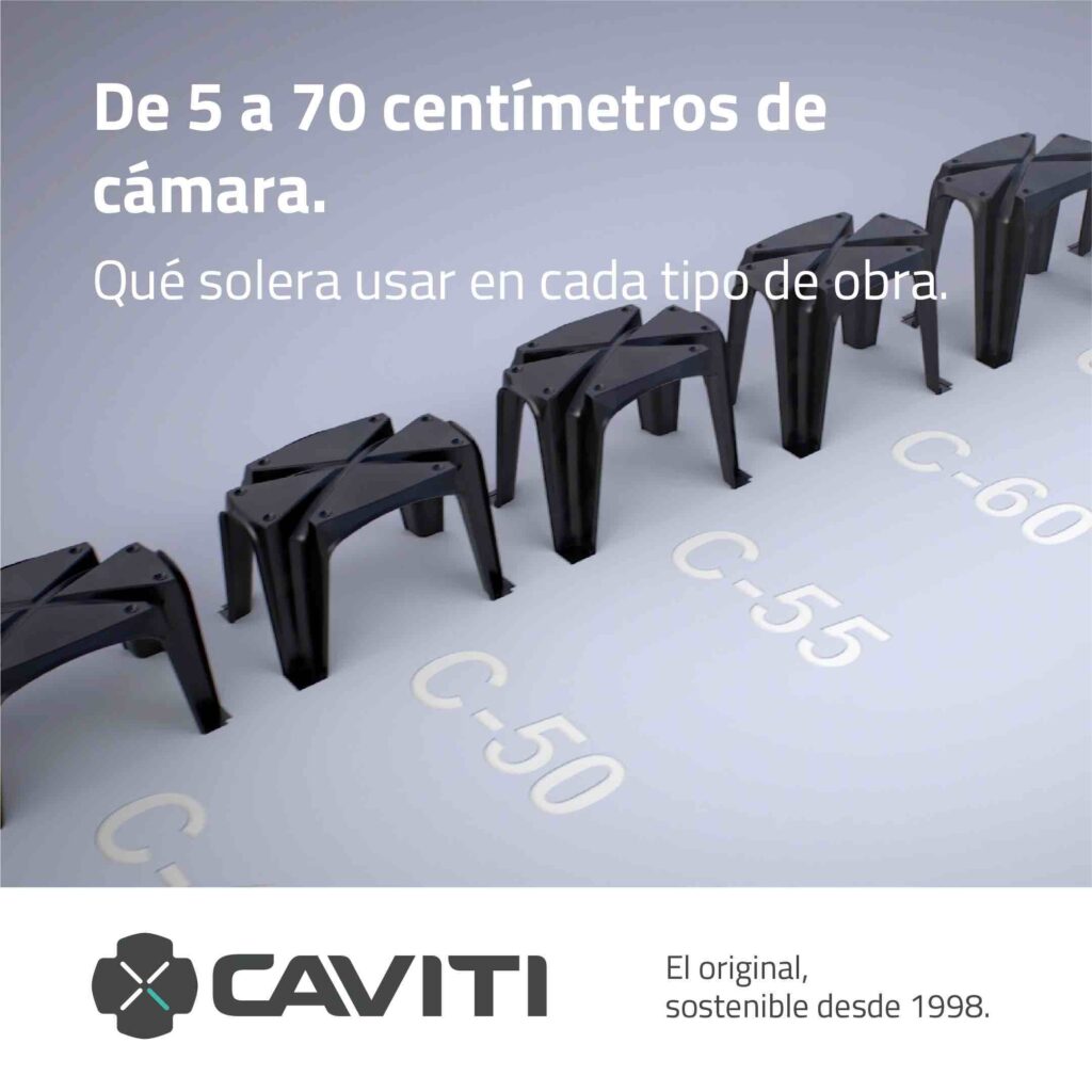En CAVITI Forjados Sanitarios fabricamos módulos de polipropileno para encofrados perdidos. Los hacemos en distintas alturas, desde los 5 hasta los 70 centímetros. El hecho de que nuestra geometría genere pilares en intereje constantes de 75×50 cm, hace que la capacidad portante se mantenga en todas las alturas. También debemos considerar la capacidad portante del terreno, la sección de capa de compresión y el armado y tipo de hormigón de esta.