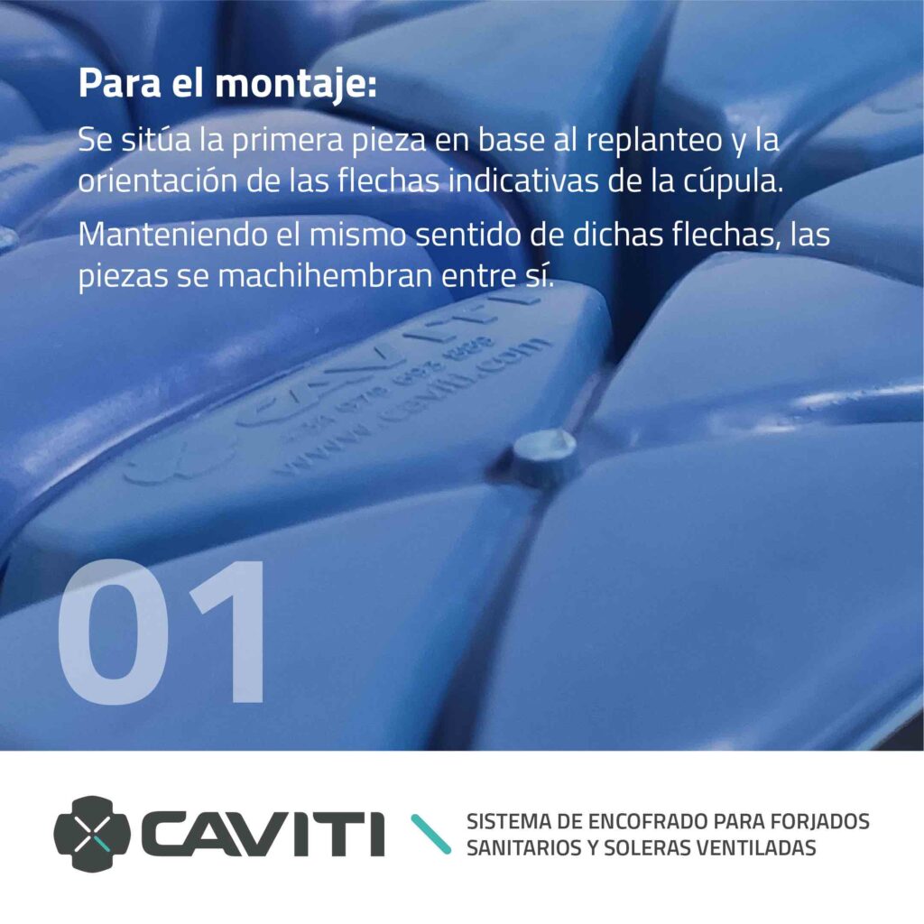 ✔️ Se sitúa la primera pieza en base al replanteo y la orientación de las flechas indicativas de la cúpula.