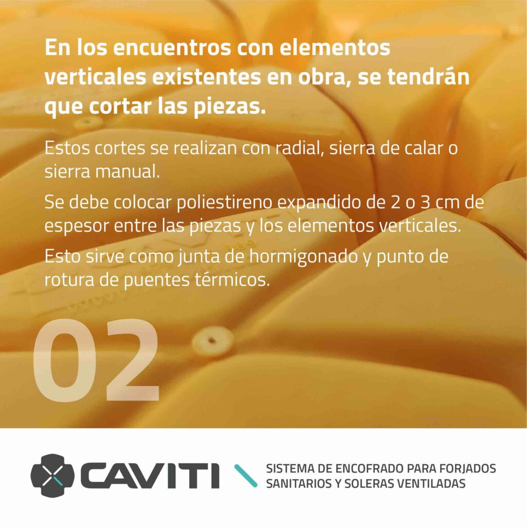 2️⃣ En los encuentros con elementos verticales existentes en obra, se tendrán que cortar las piezas: